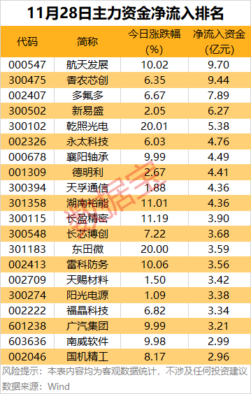 据证券时报·数据宝统计,从个股来看,87股主力资金净流入均超1亿元,10股获主力资金净流入超4亿元。