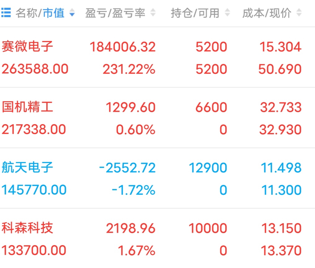 $江波龙(SZ301308)$ 、赛微电子 告诉我们什么叫:主升。。赛微电子 冲高减1/3,计划明天低开接回。。买入 $国机精工(SZ002046)$ 、$航天电子(SH600879)$ 、科森机电,试错。