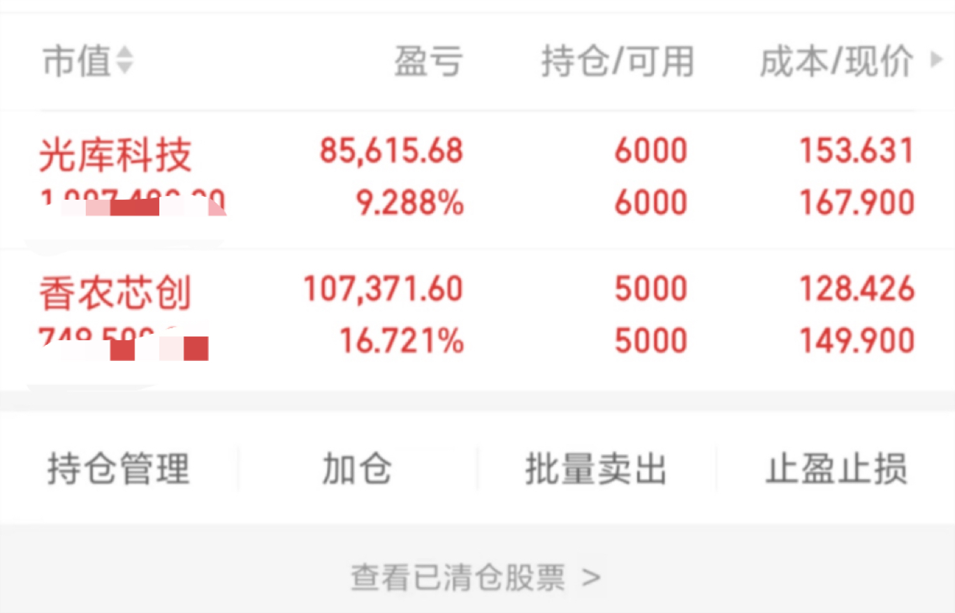 第15天今作:•卖出:•买入:•继续持有:光库科技,香农芯创明日早盘继续给出