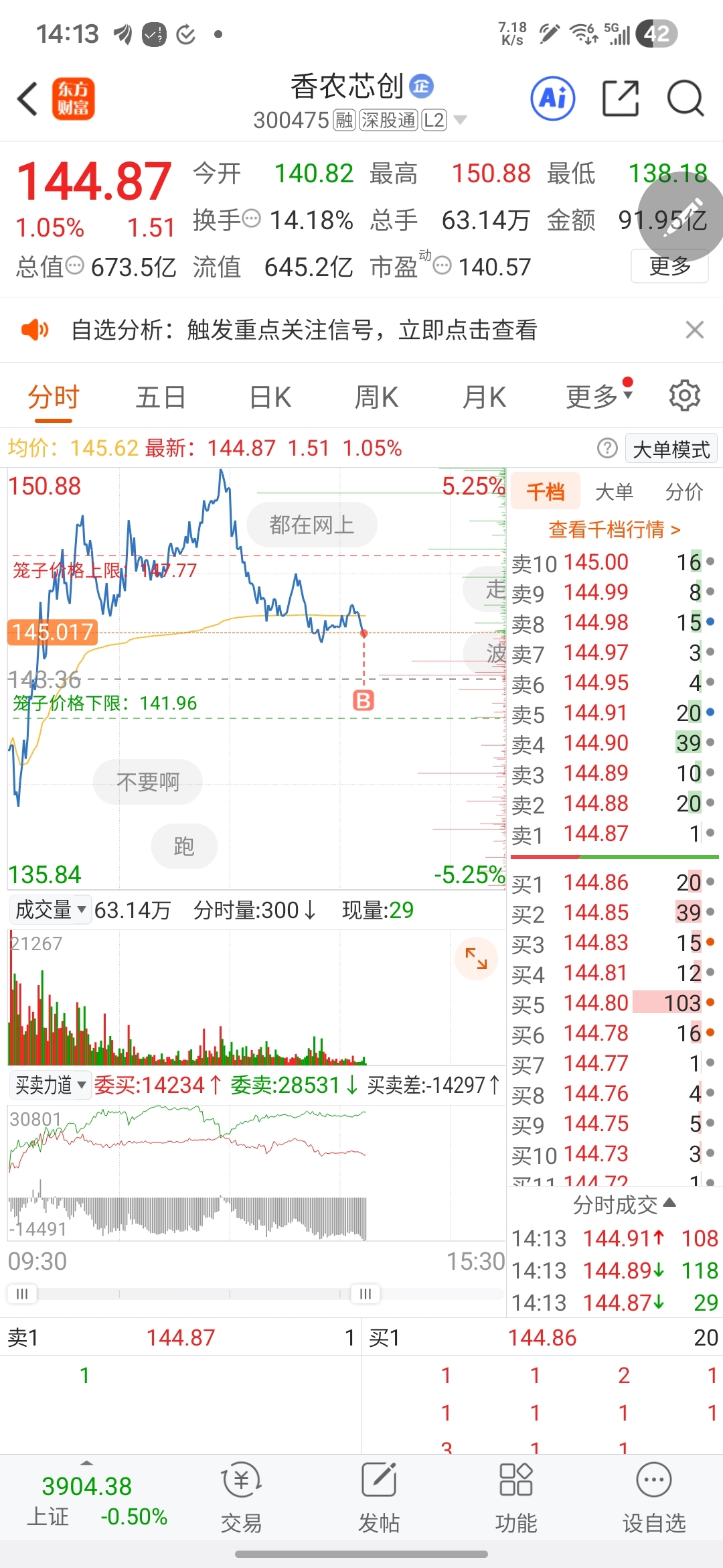 $香农芯创(SZ300475)$ 卖了宏景科技,2成仓进了这个,明天能不能吃肉