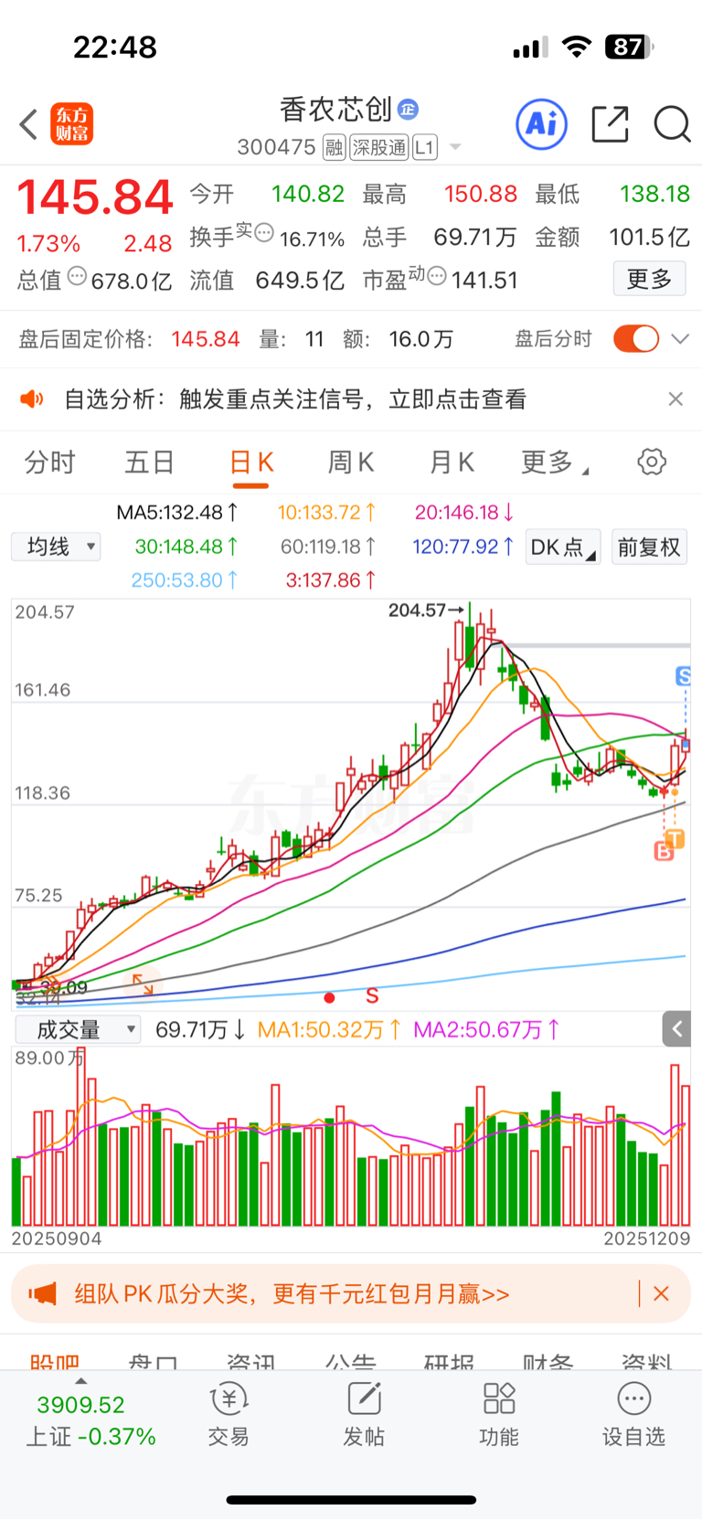 $香农芯创(SZ300475)$ 可上可下 先出了