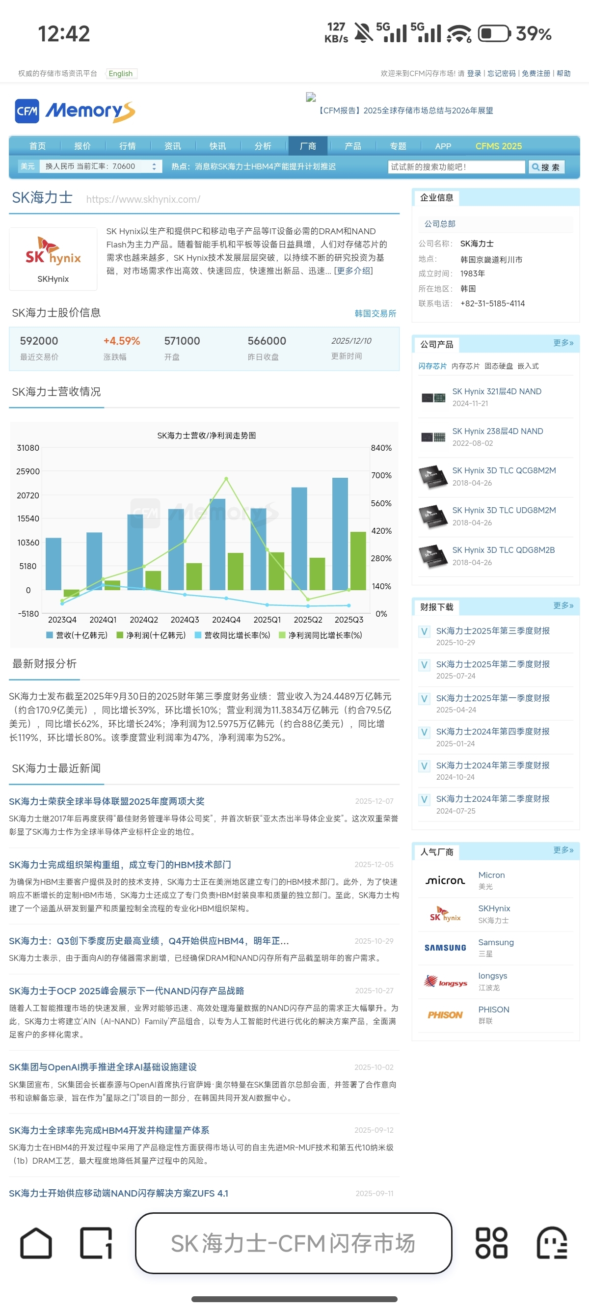 $香农芯创(SZ300475)$ 海力士涨4.59%,美光也接近历史新高了。你别跟闪迪玩了