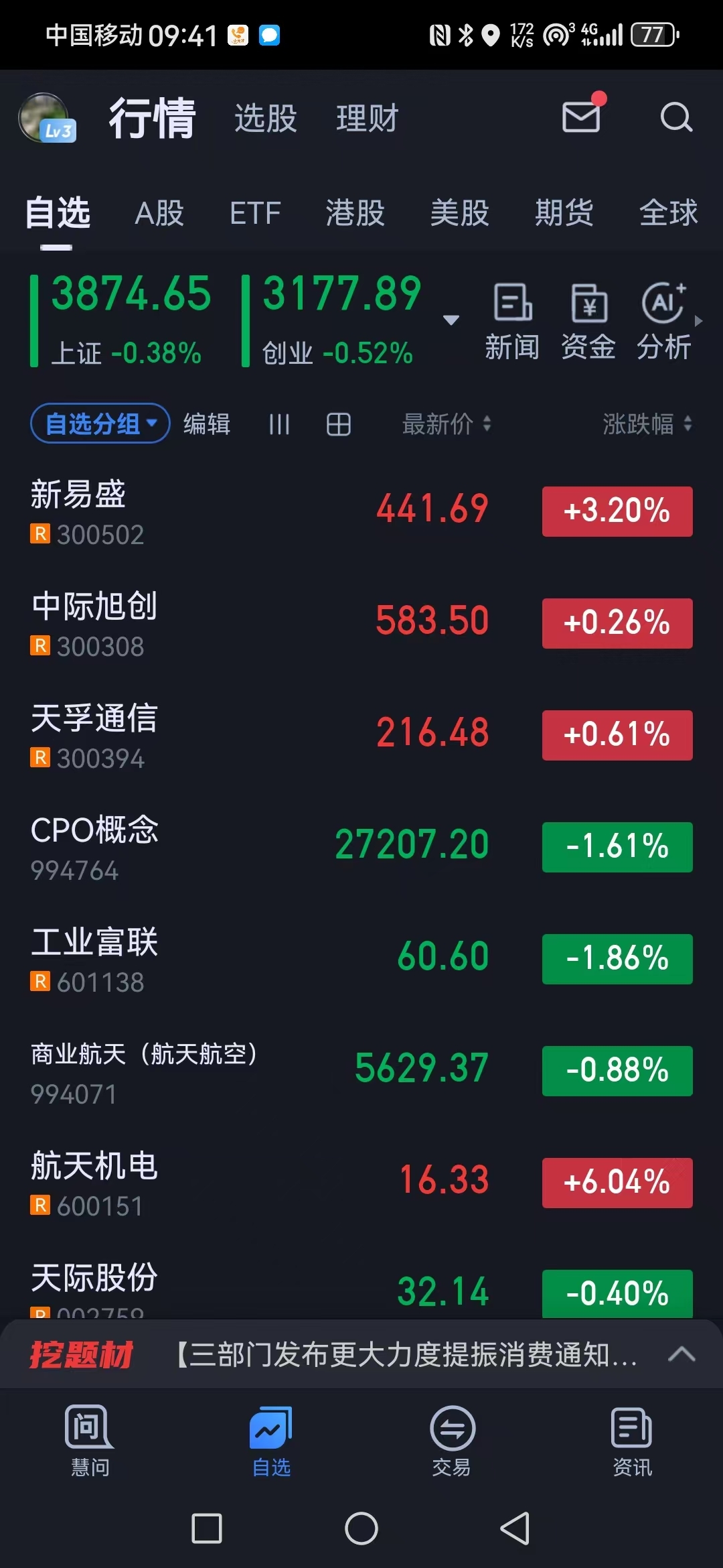 $香农芯创(SZ300475)$ 新易盛现价441,注意高跑,先跑一点为好越涨越跑为好,其他的同,大盘小股进入了熊市啊,注意安全啊