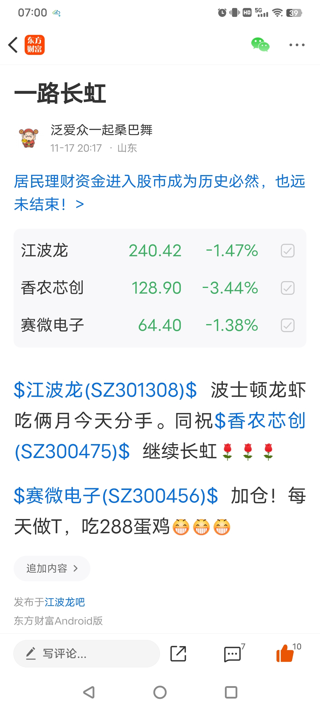 温馨提示: 1.根据《证券法》规定,禁止编造、传播虚假信息或者误导性信息,扰乱证券市场;2.用户在本社区发表的所有资料、言论等仅代表个人观点,与本网站立场无关,不对您构成任何投资建议。用户应基于自己的独立判断,自行决定证券投资并承担相应风险。《东方财富社区管理规定》