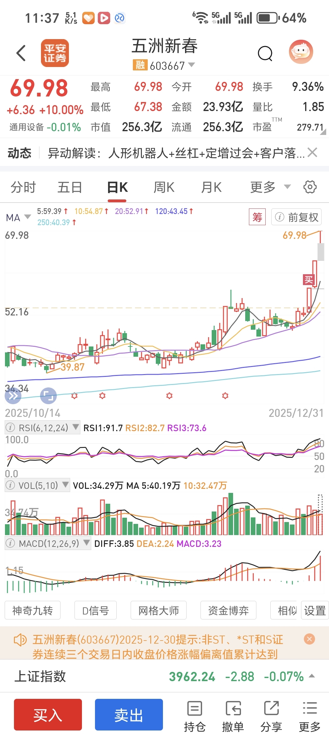 还好五洲三连板,不然真扛不住这货的亏钱速度,认亏了,留100股观察