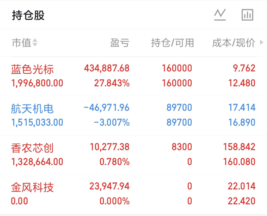 一休早盘建仓分享:$金风科技(SZ002202)$ 没保住一字开选择出局$香农芯创(SZ300475)$ 盘中介入,安心持有$蓝色光标(SZ300058)$ 继续格局,航天机电未动