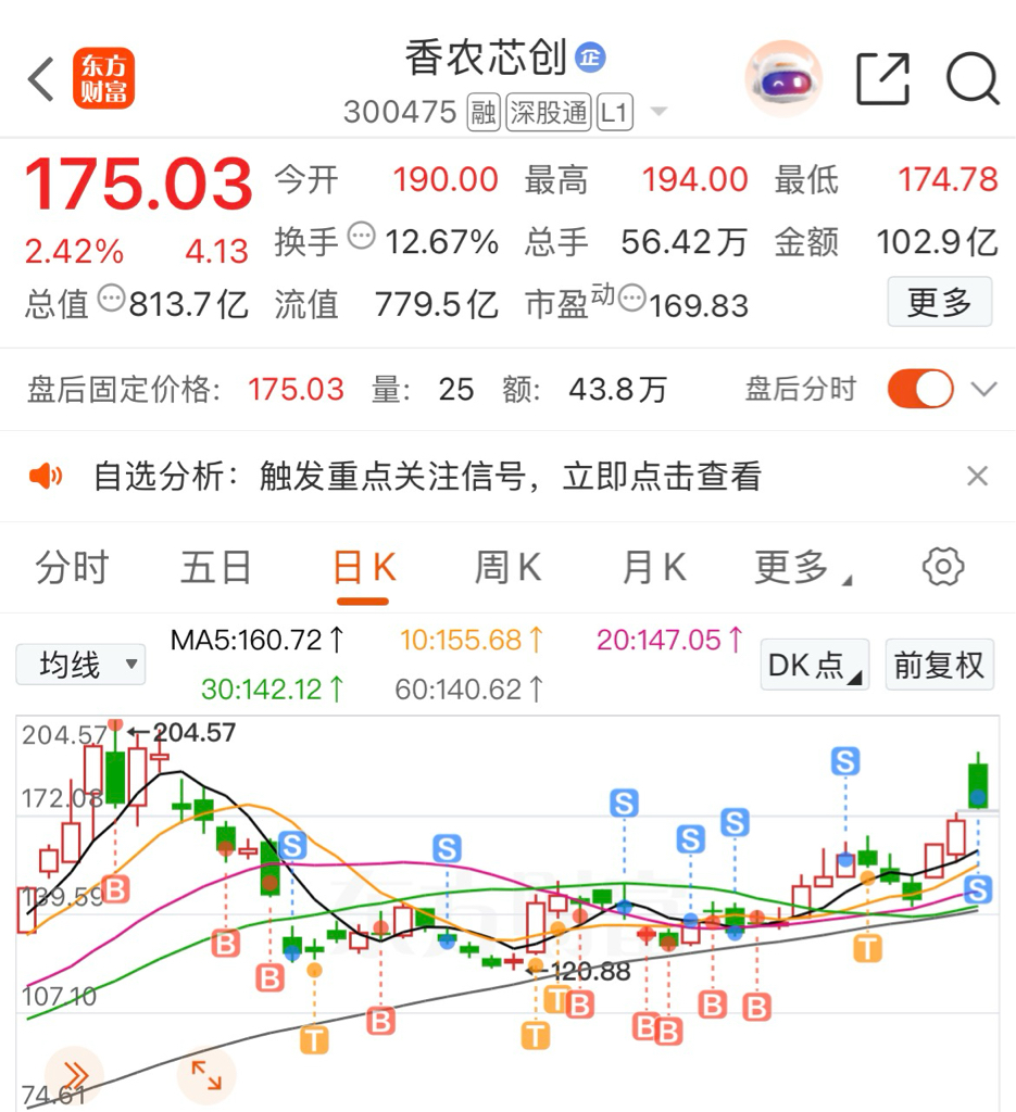 $香农芯创(SZ300475)$ 190 的同志别慌,我当初 203 买的,现在还能赚点跑路