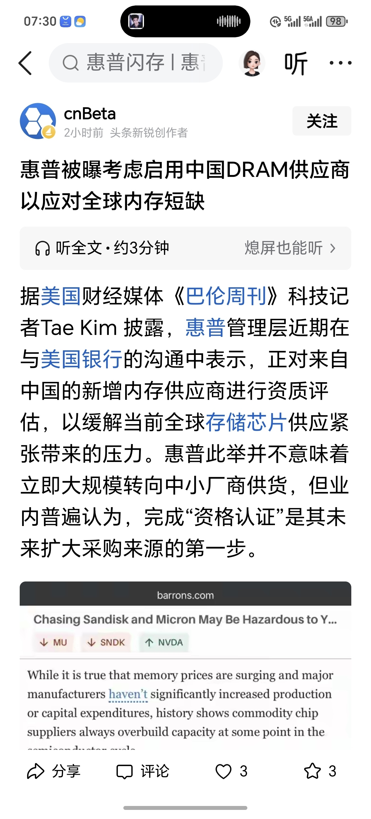 存储芯片这么缺了吗?