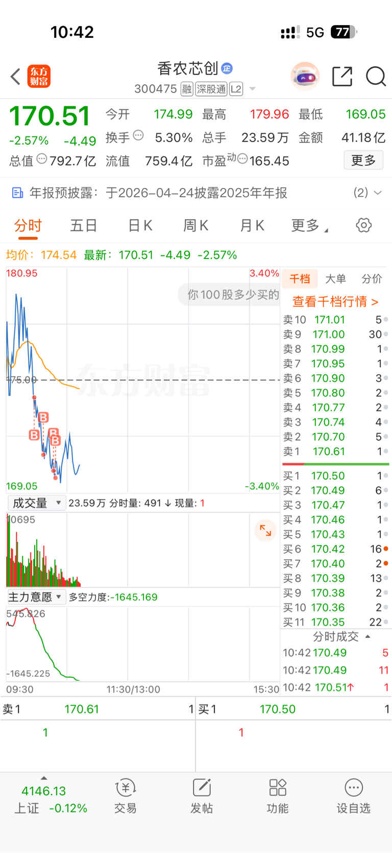 $香农芯创(SZ300475)$ 其实不是低开反抽就是,高开低走,找个低点补了然后等就行了,反正香香每天都是t的机会