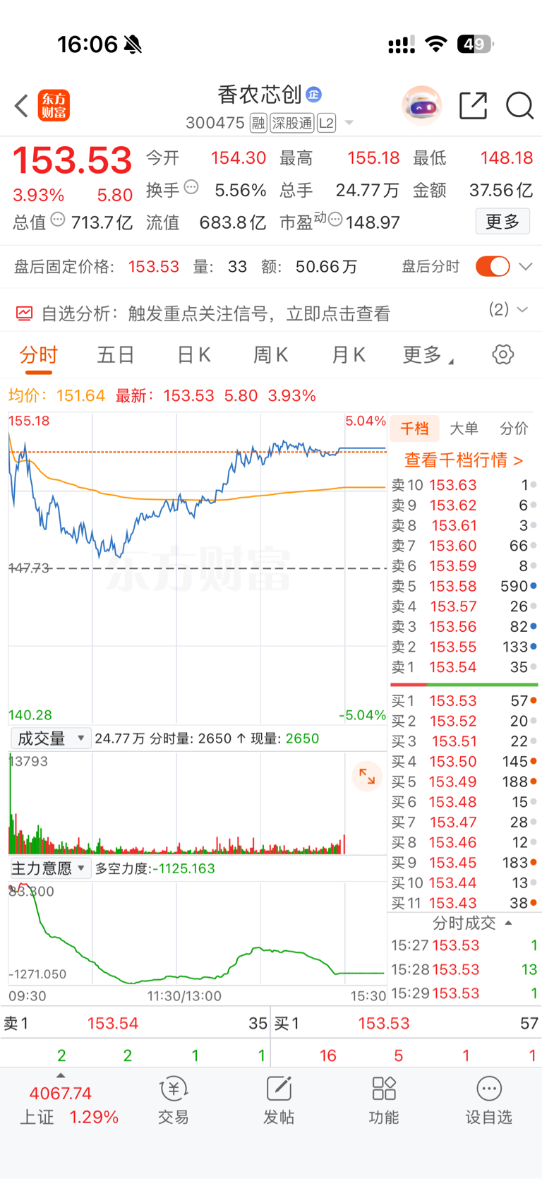 $香农芯创(SZ300475)$ 昨天跌12个点,今天反弹四个点不到,没什么好t的,手续费比收益高