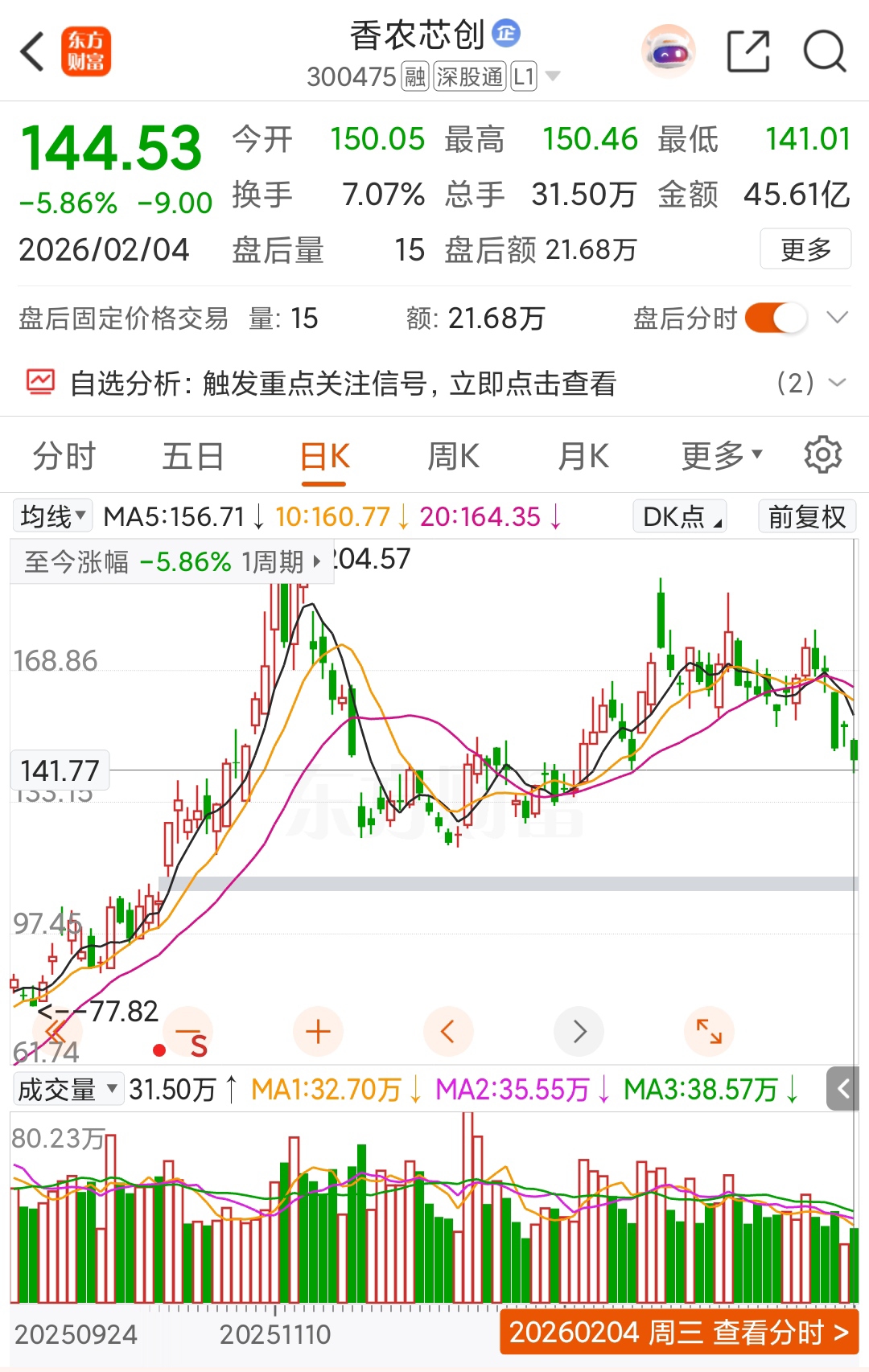 香农芯创今天刚好跌到前期箱体支撑位,已经调整5天,接下来先看2-3天反弹!