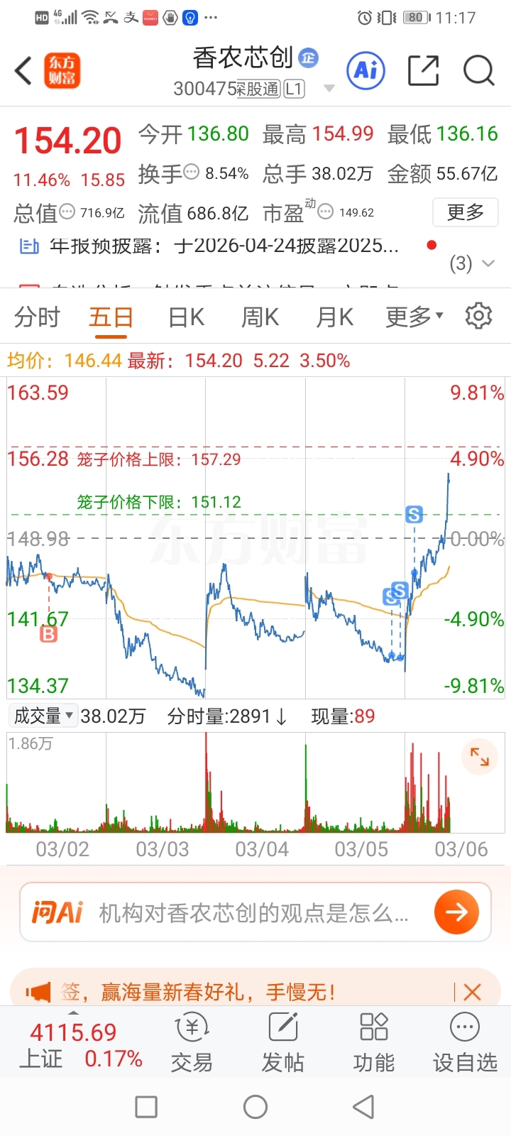$香农芯创(SZ300475)$ 前两天冲高没T成,昨天忍无可忍割在最低点。