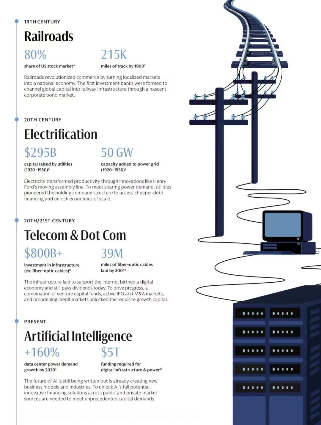1. AI是基础设施革命:AI是继铁路、电气化、互联网后的重大技术拐点,其发展依赖资本与基础设施支撑,而不仅仅是代码与模型。