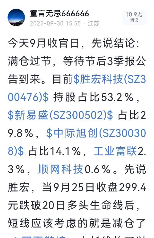 今天10月份首个交易日,开门黑!$中际旭创(SZ300308)$ 高开低走第二天跌破20日多头生命线,按原则在404.88元止损出局;工业富联在68.88元止盈离场;47.44元和46.4元新建仓半导体封测龙头$长电科技(SH600584)$ (计划买入的通富微电一字板买不到);第一次14.75元尝试买入港股$微创医疗(00853)$ 练练手。