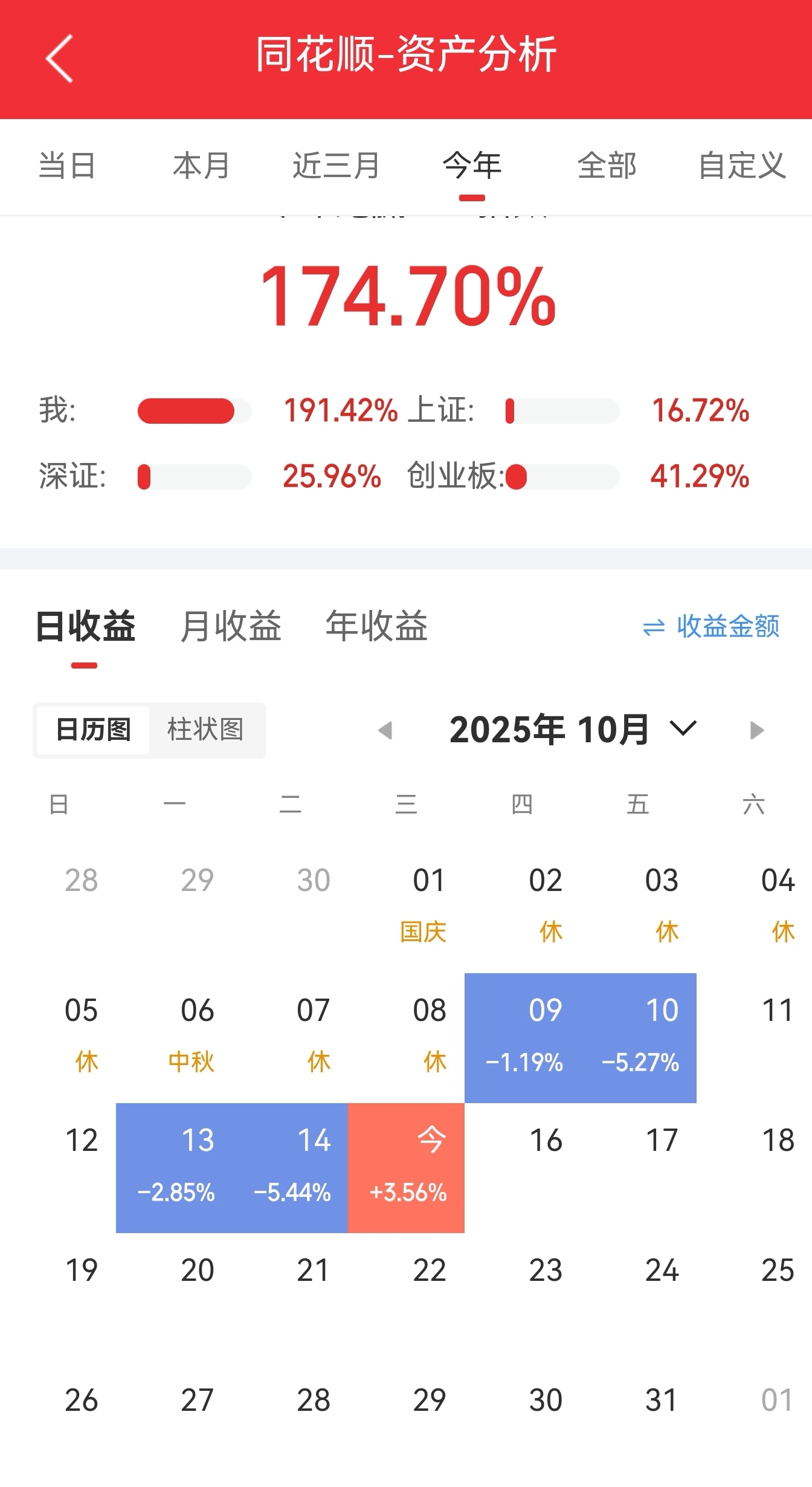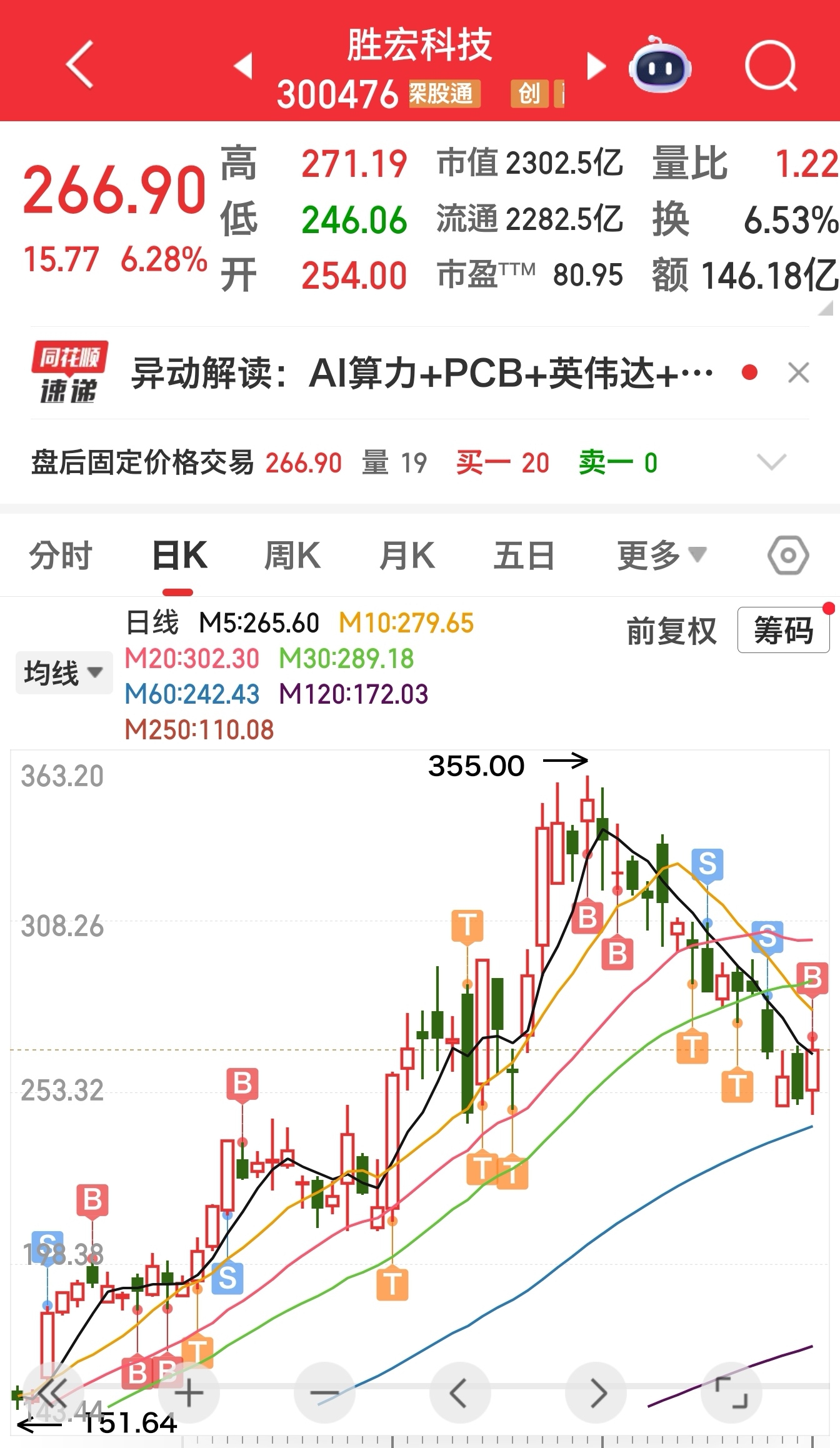 今天10月15日,迎来10月份首个红盘,这个月的目标力求保持月线5连阳。今天$胜宏科技(SZ300476)$ 站上5日线,下午开始在264.5元、265.5元和266元加仓,是对10月10日280元减仓的低吸,持股占比上升至62.9%; $冰川网络(SZ300533)$ 是3季报高增长低估值的明确标的,开始少量参与试试盘感;现金留存34.6%,等待胜宏二次探底继续加仓的机会。