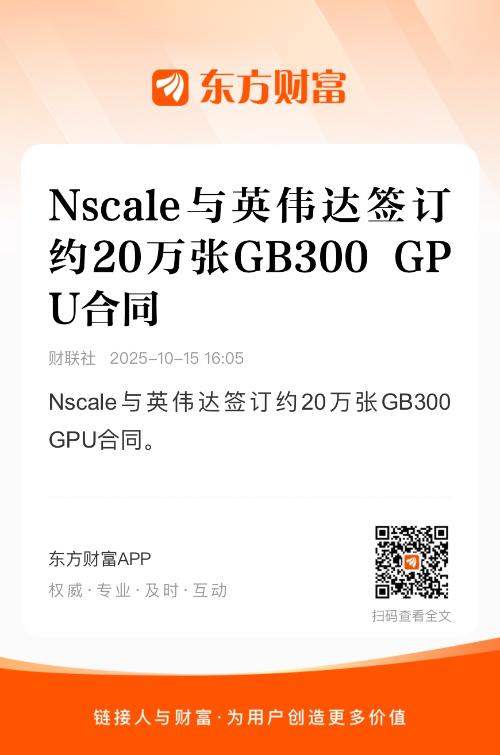 Nscale与英伟达签订约20万张GB300 GPU合同。