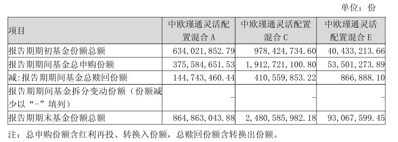 再看中欧瑾通灵活配置混合,C类份额在三季度申购超过19亿份,期末的份额相比期初也增长超过一倍。