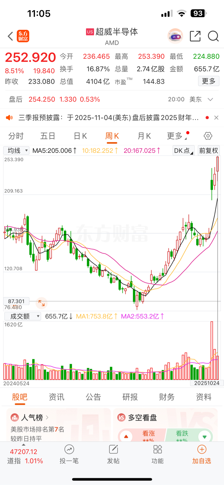 $胜宏科技(SZ300476)$ AMD股价继续突破历史新高,胜宏科技作为AMD的核心供应商,周一拉个涨停板也是股价突破历史新高!