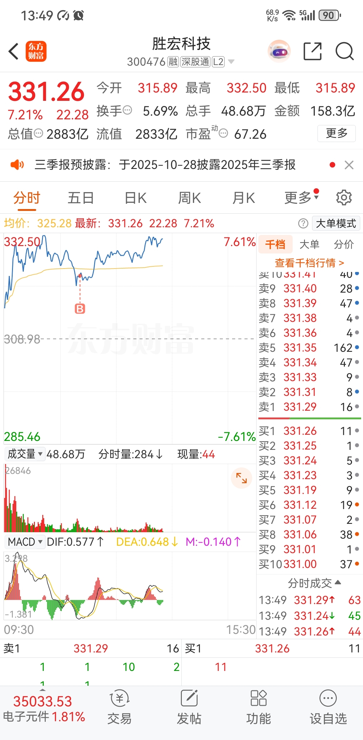 $胜宏科技(SZ300476)$ 打完剩余全部弹药,听天由命了