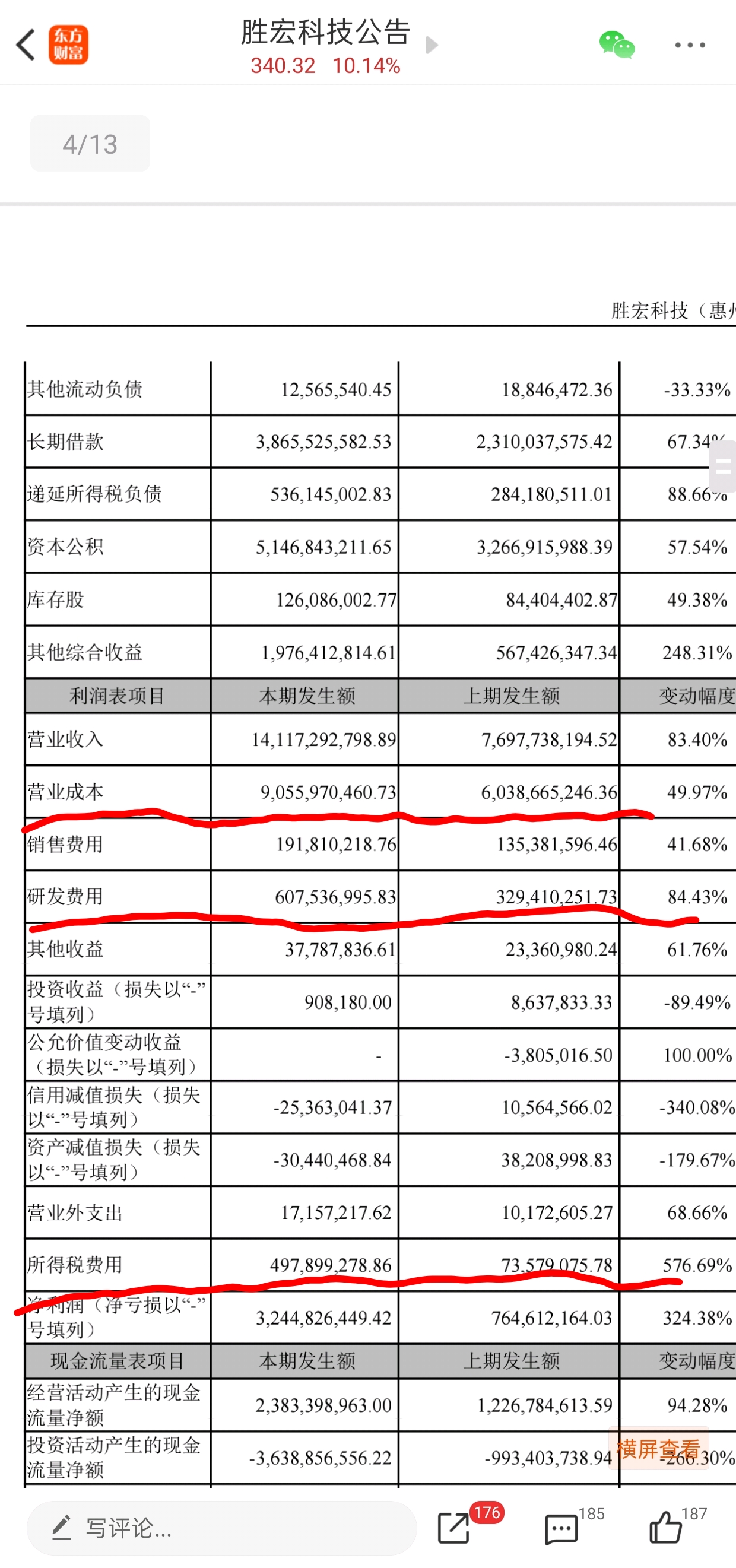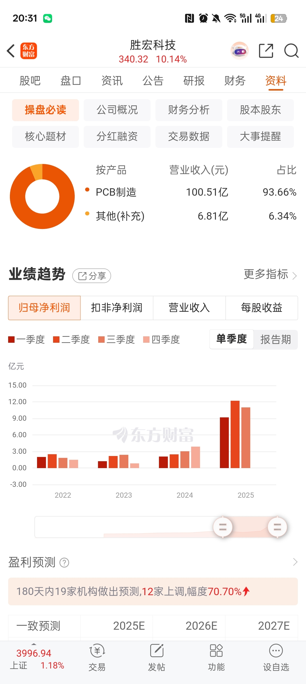 虽然净利润环比下滑,但是营业收入环比仍然上涨,研发费比上期多了3个亿,营业成本多出30个亿?这个业绩有点掩埋很明显是计提了很多。而且泰国等新厂多处于爬坡阶段,想想定增价248,大宗30亿成交价277,都是长线资金接的。说明胜宏科技业绩还没有完全爆发出来。看看在建工程怕个毛啊