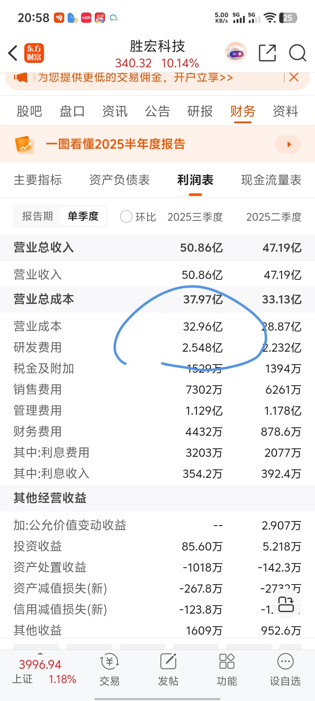 营业成本和研发高了。本来利润环比也可以增长的。所以看报表很重要。只会看利润的人,