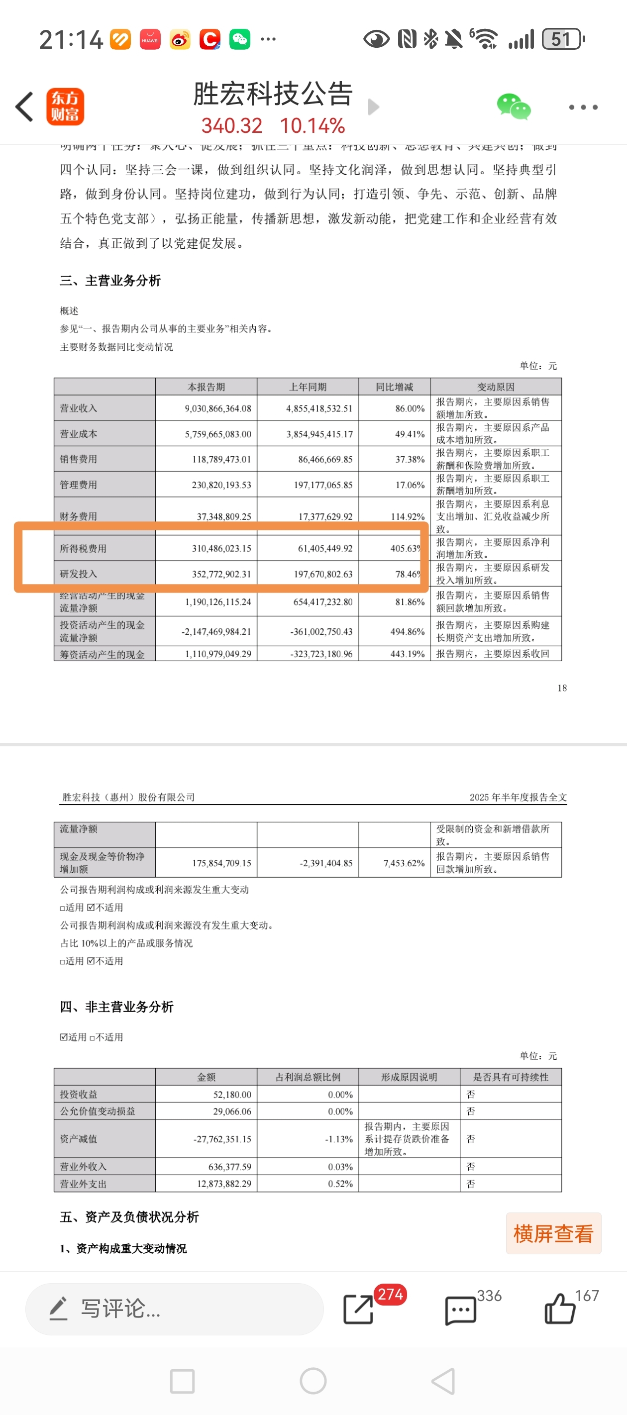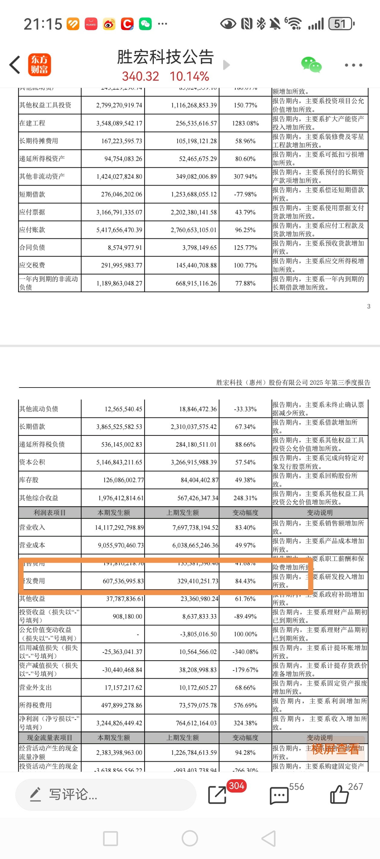 研发费用较二季度增加了2.5亿多。