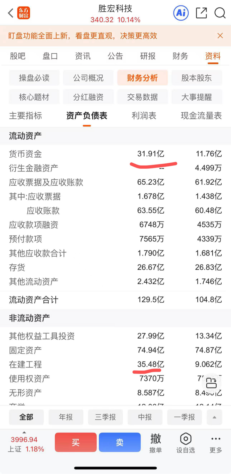 $胜宏科技(SZ300476)$ 营收净利润双增,负债率降低,资产效率大幅提升,现金流大增,再次投入35亿在建工程,扩大生产主营,也是致利润稀释。非常好的报表
