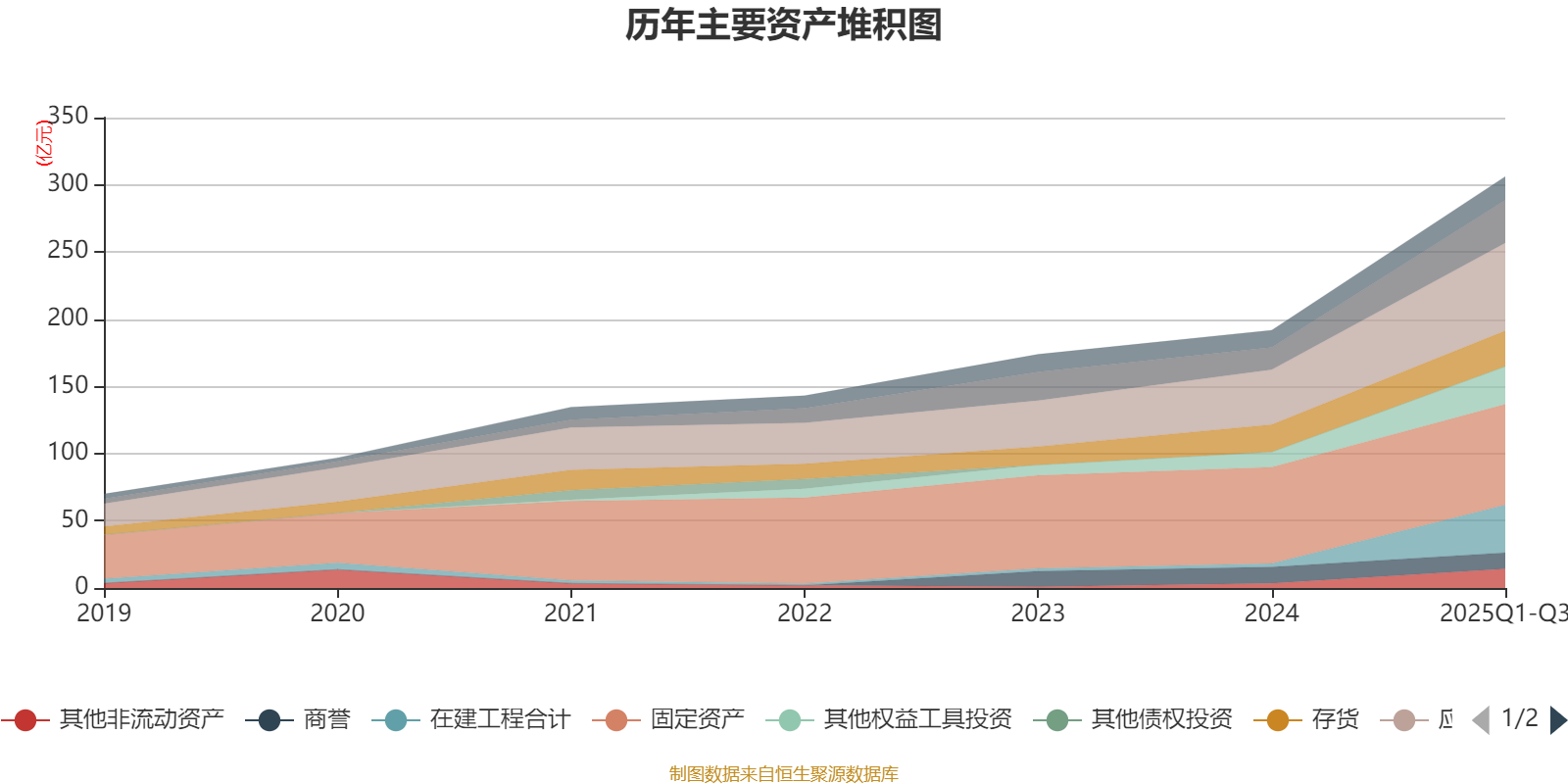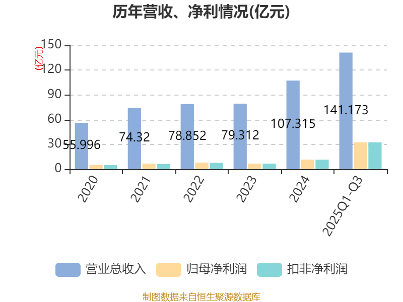 资产重大变化方面,截至2025年三季度末,公司固定资产较上年末增加4.49%,占公司总资产比重下降12.92个百分点;在建工程合计较上年末增加1283.08%,占公司总资产比重上升10.25个百分点;其他权益工具投资较上年末增加150.77%,占公司总资产比重上升3.32个百分点;其他非流动资产较上年末增加307.94%,占公司总资产比重上升2.83个百分点。