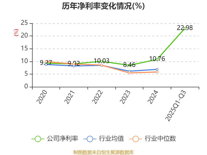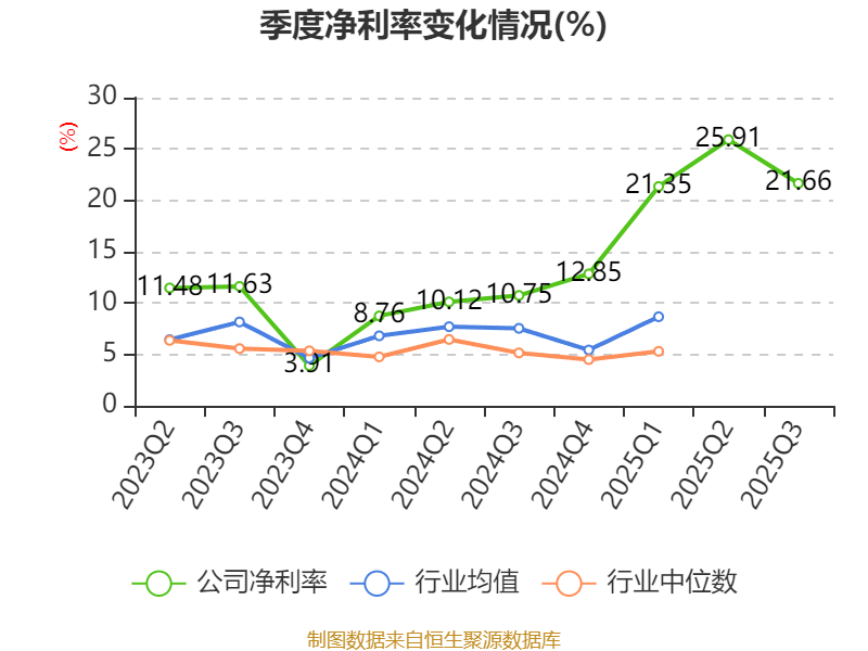 盈利能力方面, 2025年前三季度公司加权平均净资产收益率为29.06%,同比上升19.51个百分点。公司2025年前三季度投入资本回报率为19.65%,较上年同期上升13.07个百分点。