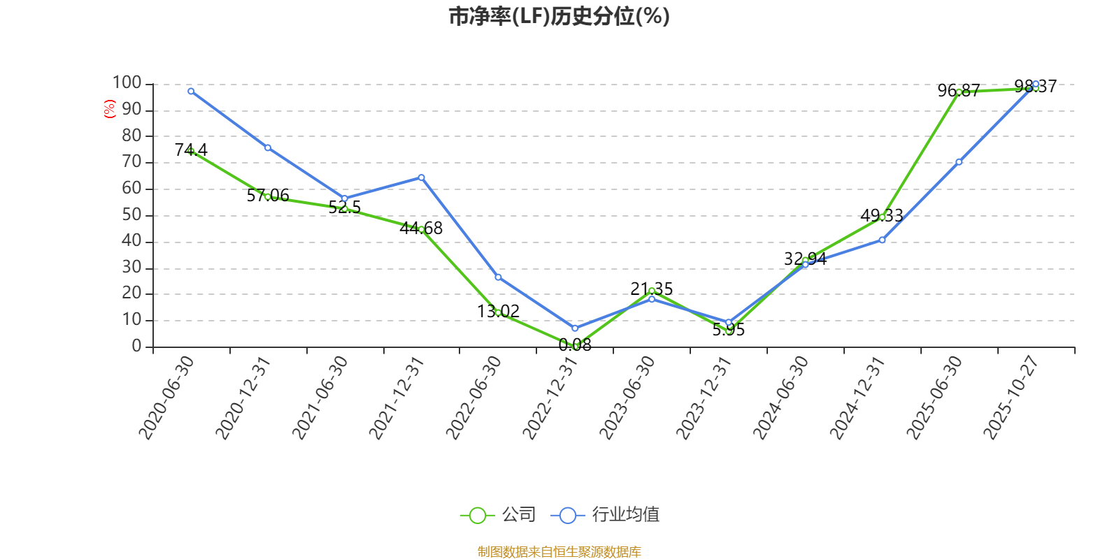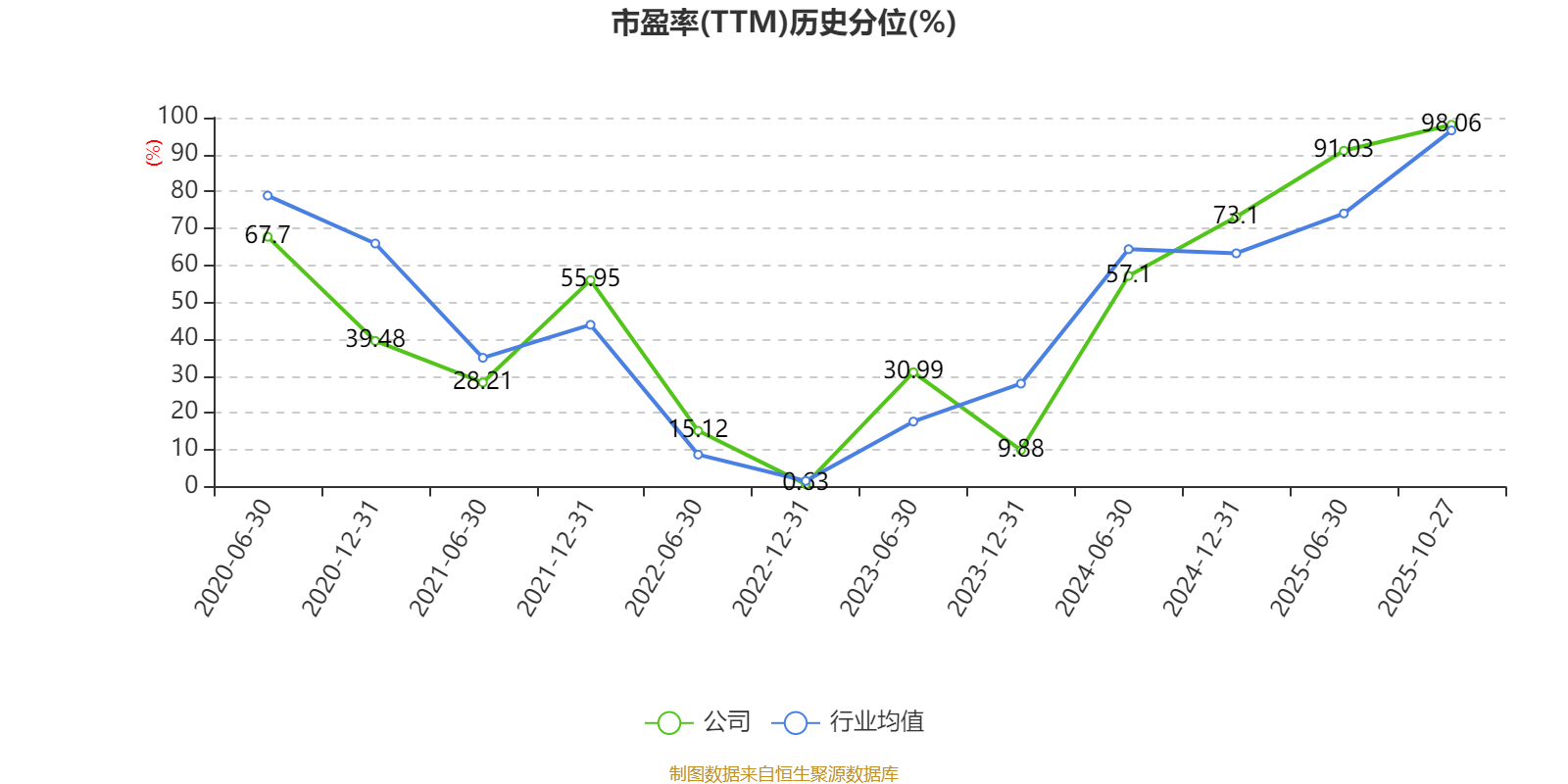 市盈率、市净率为负时,不显示当期分位数,会导致折线图中断。