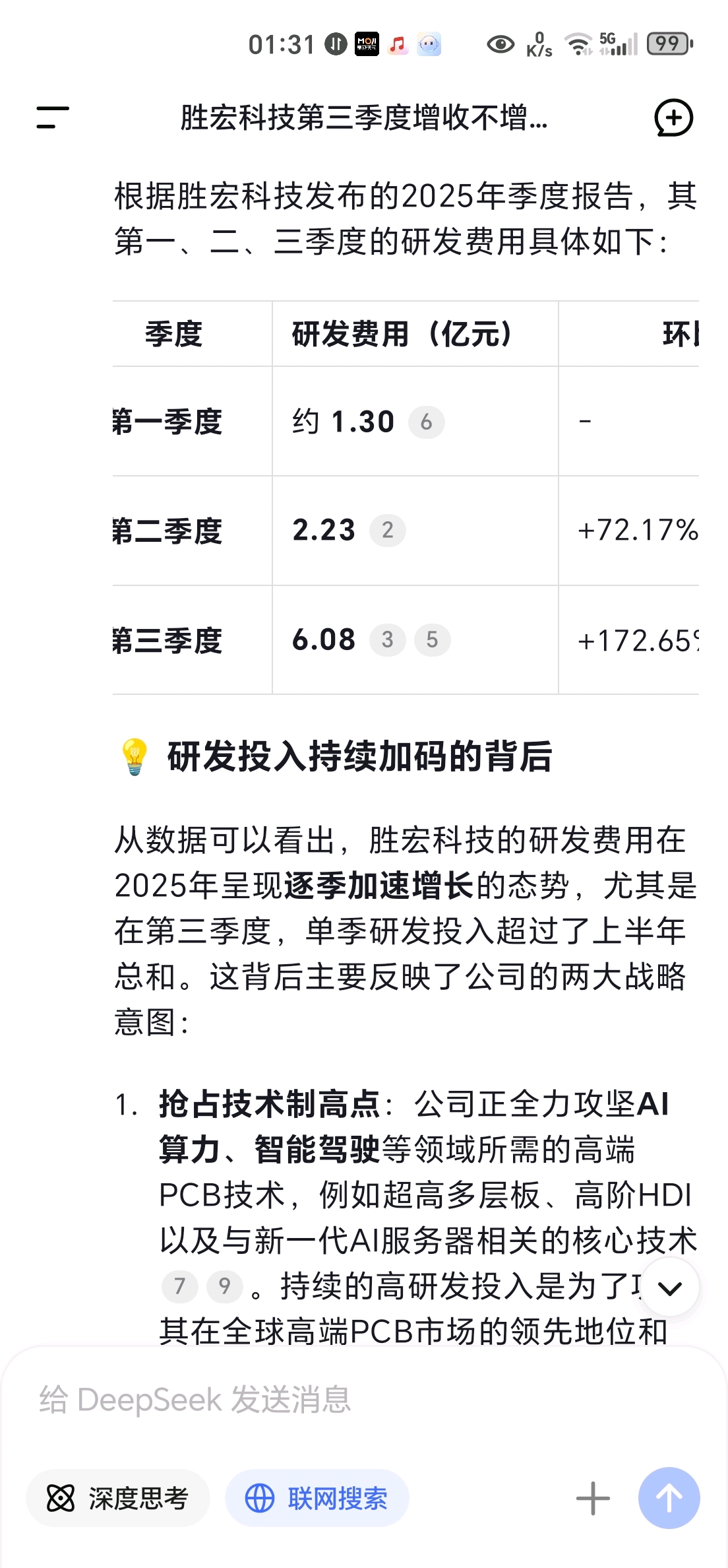 $胜宏科技(SZ300476)$ 胜宏科技三季度增利的速度不及增收的主要原因是研发费用大幅增加