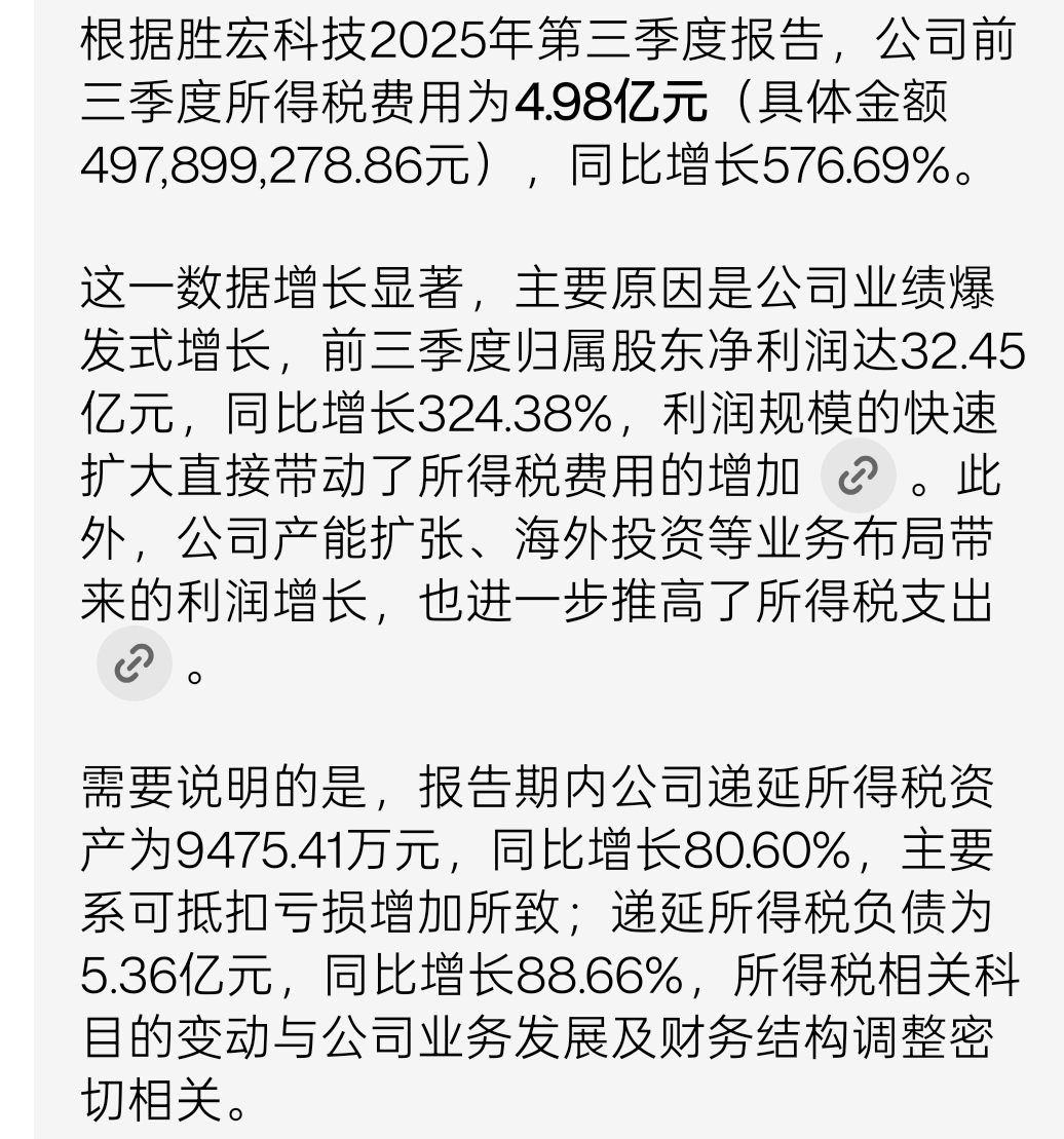 $胜宏科技(SZ300476)$ 胜宏三季度所得税