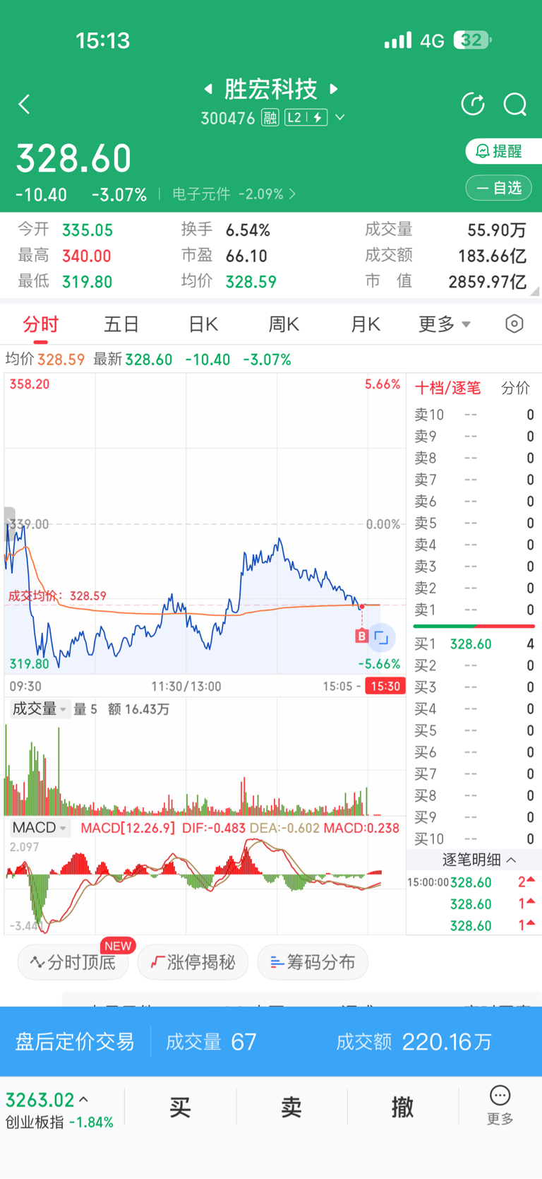 以下为收盘持仓情况,继昨日404止盈新易盛仓位平调阳光电源184买入,今日做T继