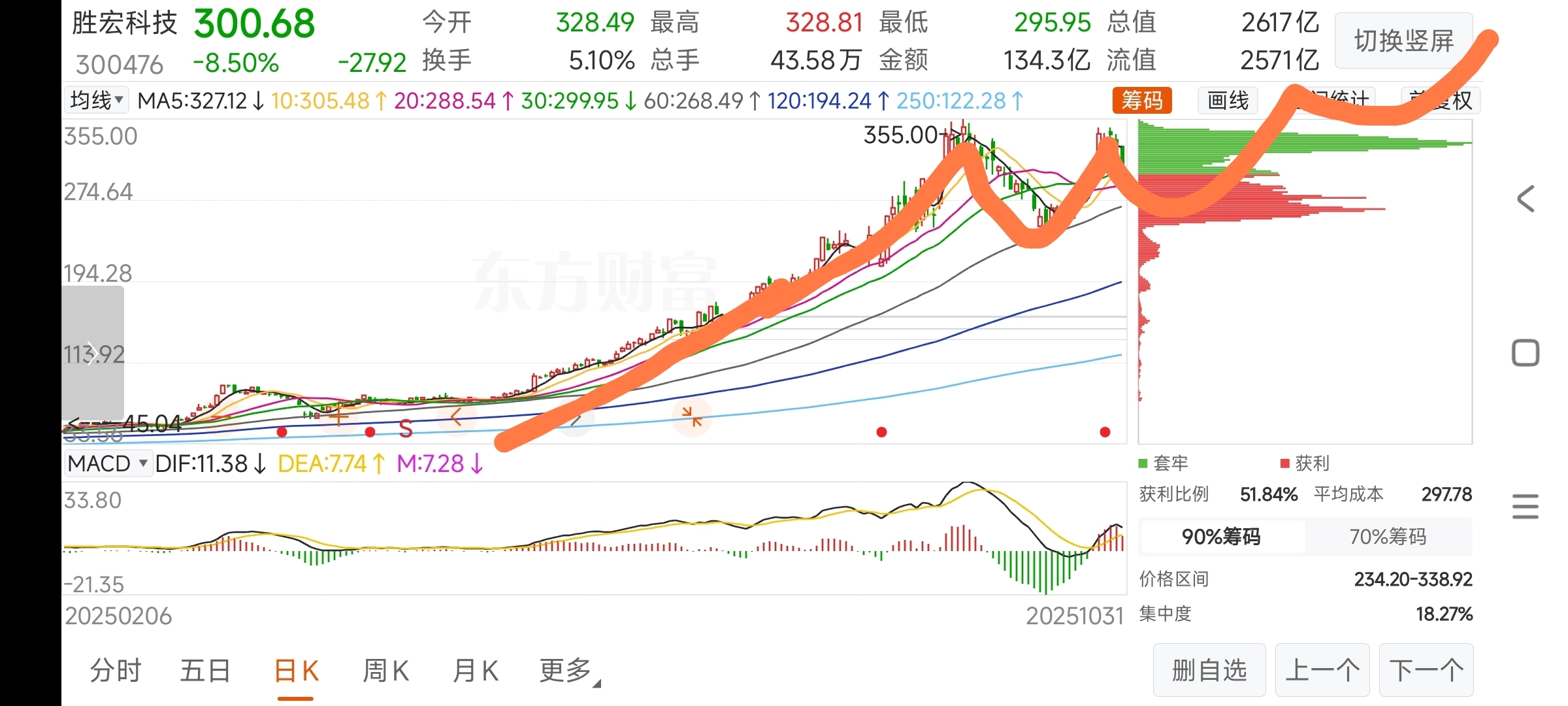 胜宏走的是VCP形态,类似于三角形整理,60日线也逐步上来了,低点会越来越高,长