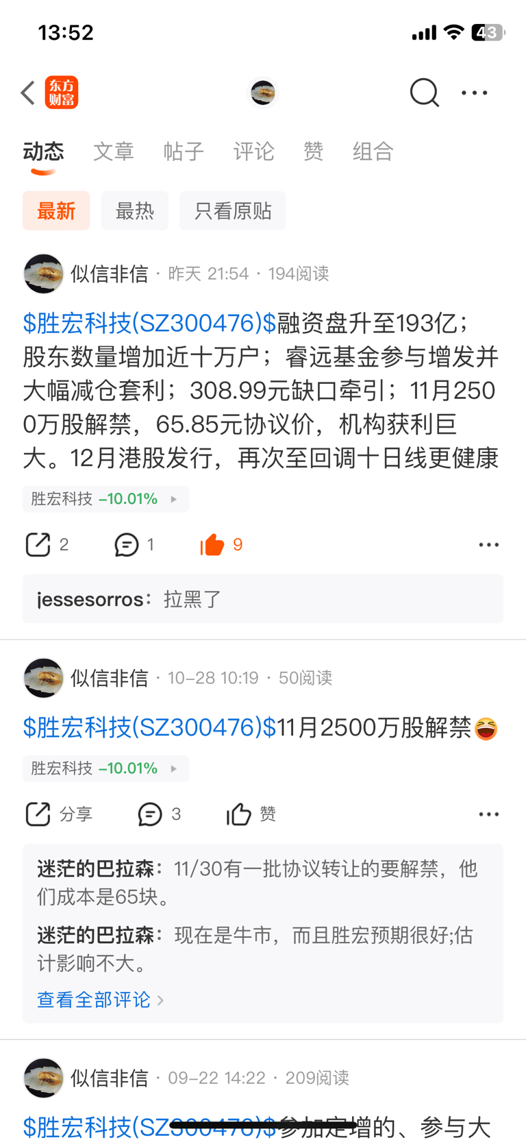 $胜宏科技(SZ300476)$ 昨天善意提醒,还被拉黑,嘿嘿