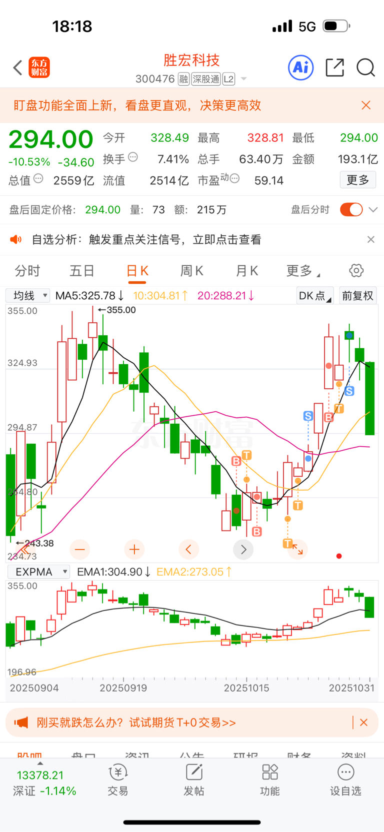 $胜宏科技(SZ300476)$  前天345跑的,多出来的仓位在外面待了两天亏的跟不动胜宏的差别不是很大。想想还是在胜宏的日子里比较舒服。星期一多少接个底仓回来。 一直看好这只票。