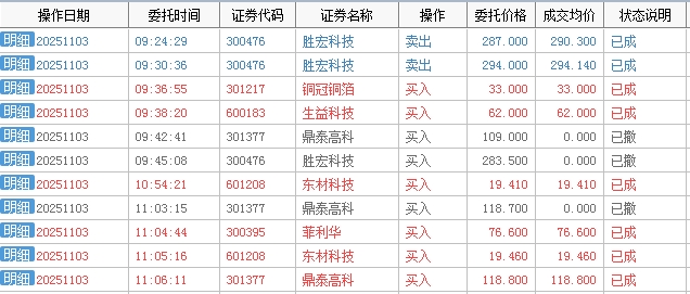 今天11月份首个交易日,按计划集合竞价290.3元和今天补缺口位置294.14元分别挂卖减仓,开始补自己手上5只PCB上游个股,目前$胜宏科技(SZ300476)$ 持股占比68.3%。