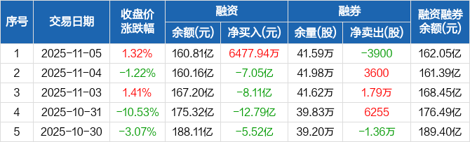 胜宏科技:融资净买入6477.94万元,融资余额160.81亿元(11-05)