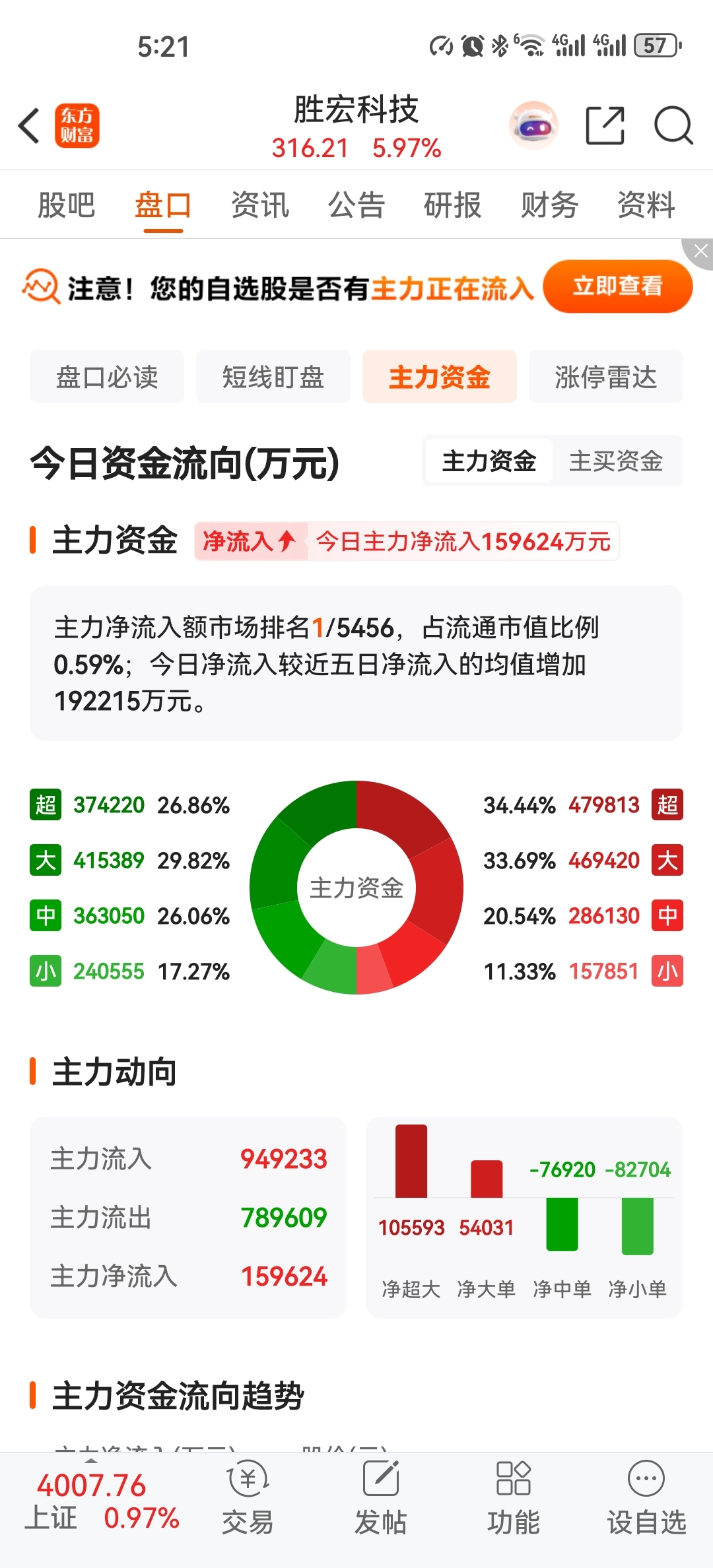 $胜宏科技(SZ300476)$ 全天市场大资金流入第一名,明天会有大肉吃吗?338山顶站岗的能解放吗?#炒股日记# #收盘点评# #股市怎么看#