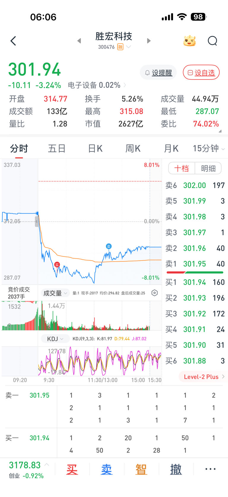 今天本来是已加仓292,最后选择T出299,没想到达子大涨,后悔了。