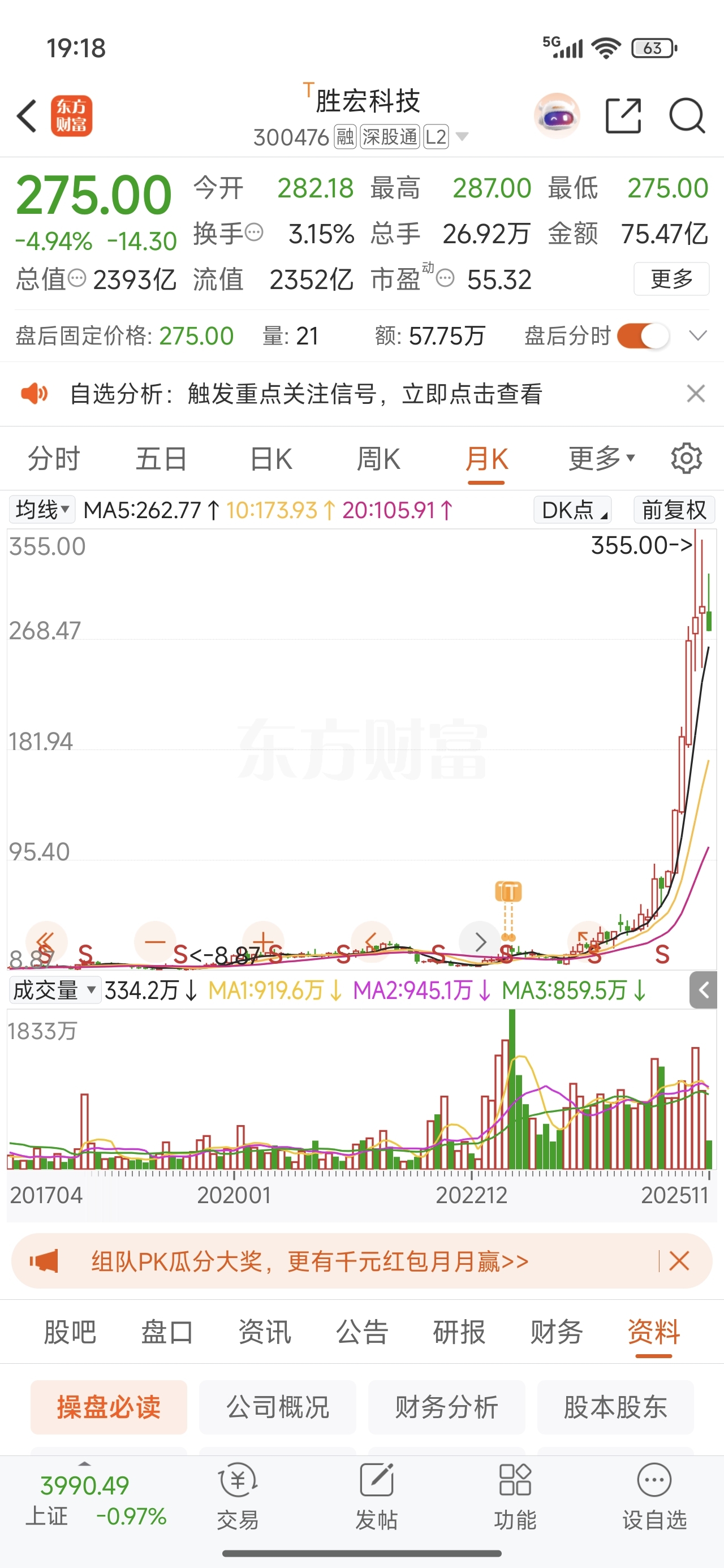 $胜宏科技(SZ300476)$ 曾经有一支股在我面前,我没有珍惜