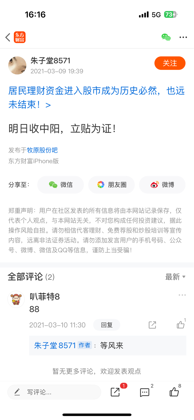 温馨提示: 1.根据《证券法》规定,禁止编造、传播虚假信息或者误导性信息,扰乱证券市场;2.用户在本社区发表的所有资料、言论等仅代表个人观点,与本网站立场无关,不对您构成任何投资建议。用户应基于自己的独立判断,自行决定证券投资并承担相应风险。《东方财富社区管理规定》