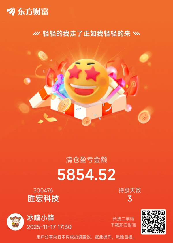$胜宏科技(SZ300476)$ 赚的不多,但考虑现在立子作妖,求稳先出了保下月收益