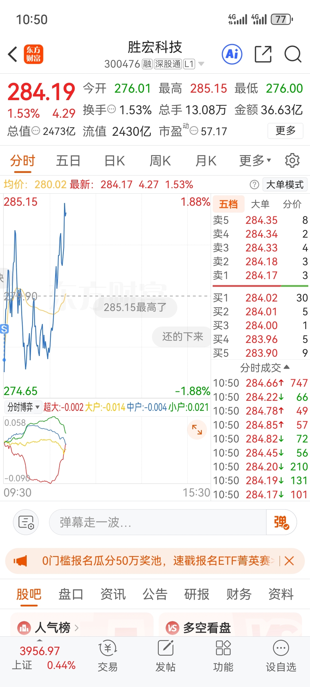 别涨了,看的我心痛早盘把胜宏科技卖了,换成摩恩电气,不知道赌没赌对,明天别太惨
