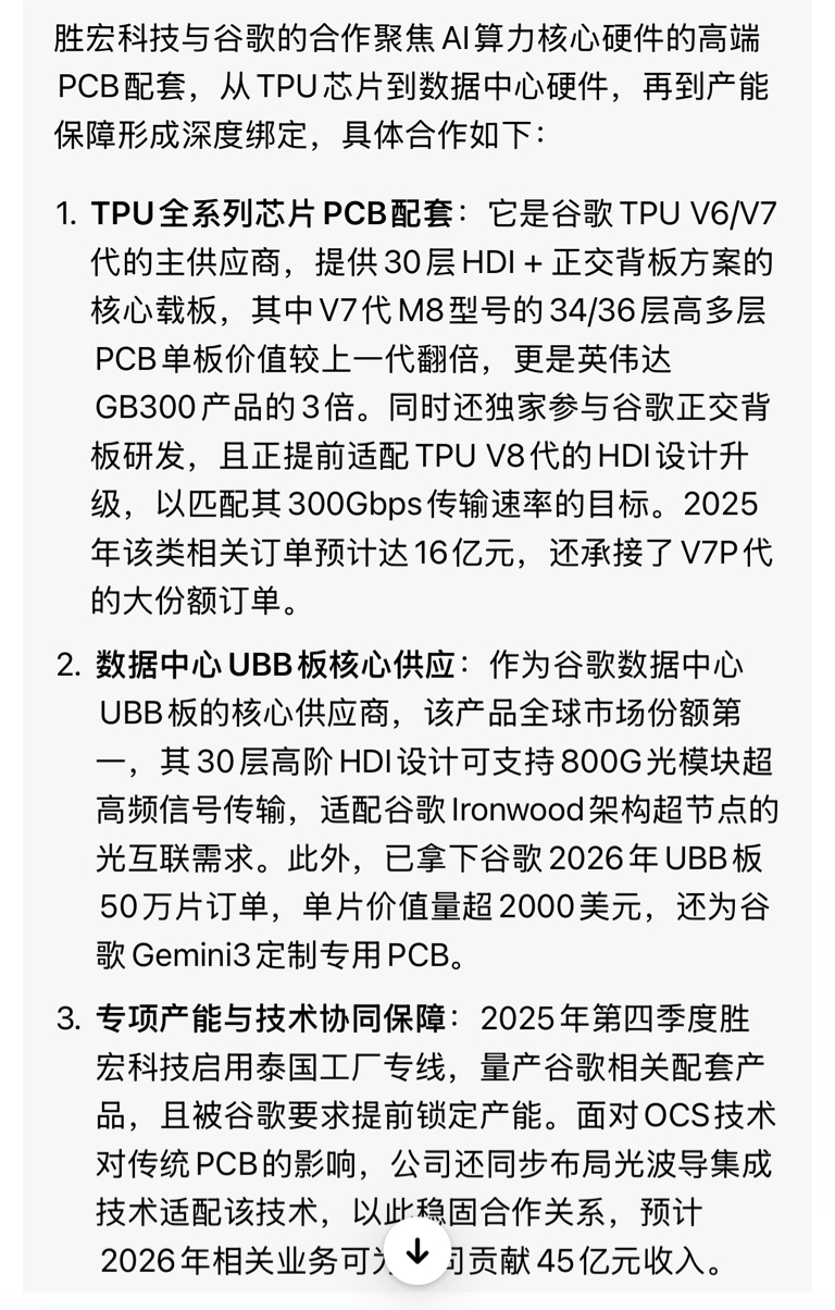 $胜宏科技(SZ300476)$ $谷歌-C(NASDAQ|GOOG)$ $谷歌-A(NASDAQ|GOOGL)$ 胜宏科技承包了谷歌百分之四十的订单,