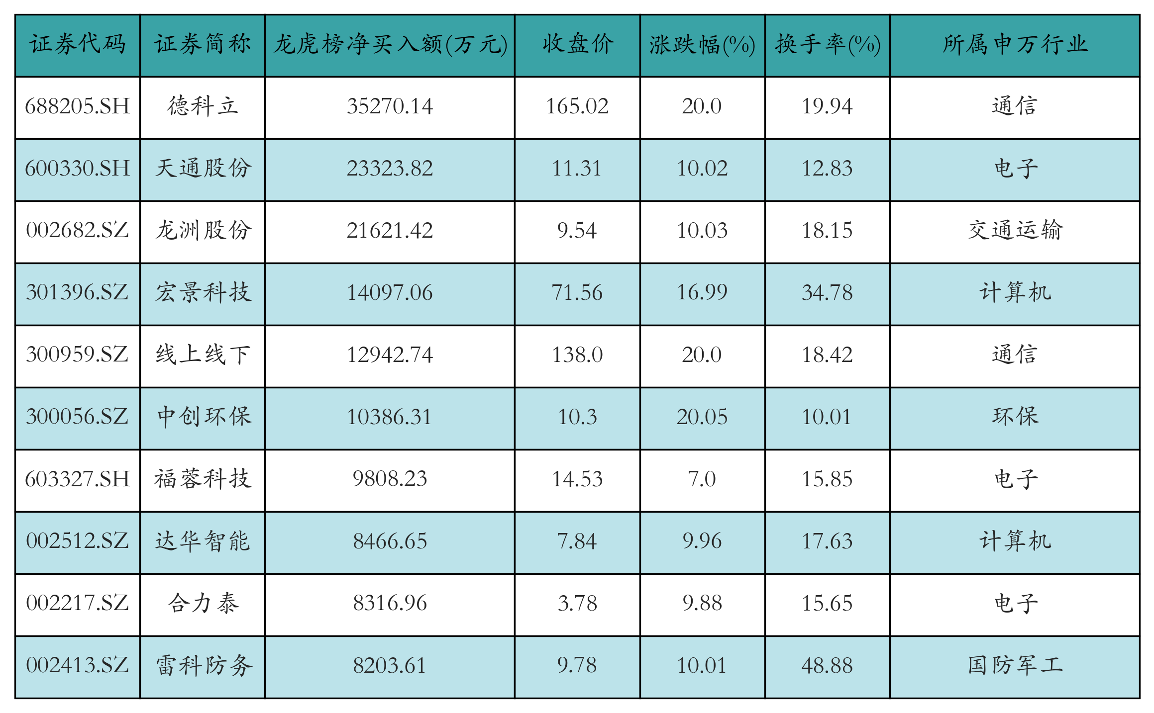 昨日龙虎榜营业部净买入额前10详情见下表:
