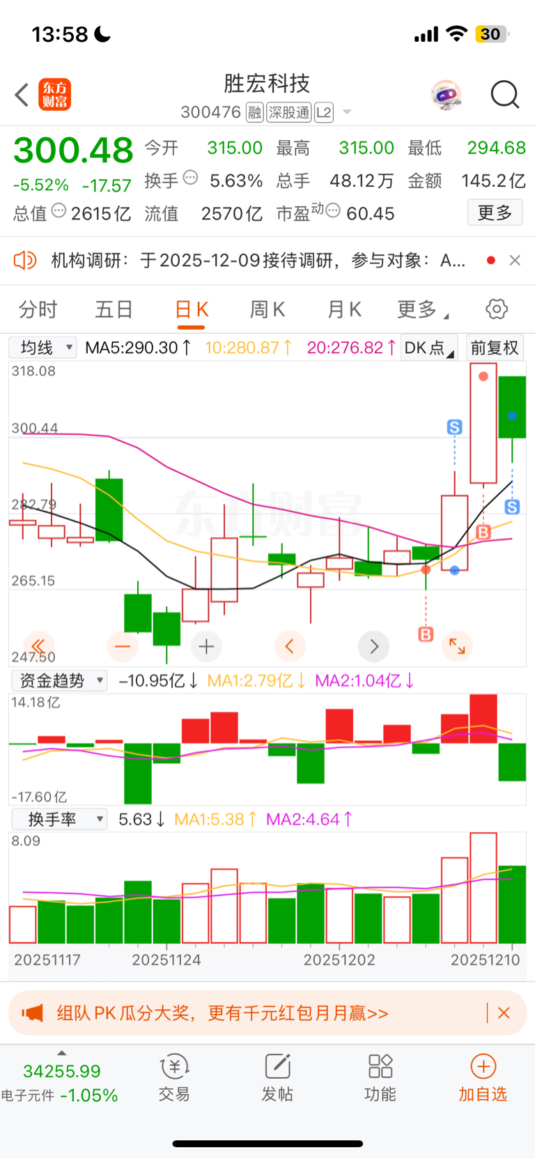 $胜宏科技(SZ300476)$ 易中天胜,前三个都赚过钱,唯独这个,再也不买这个了买一次亏一次
