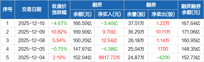 胜宏科技:融资净偿还3.4亿元,两市排名第二(12-10)