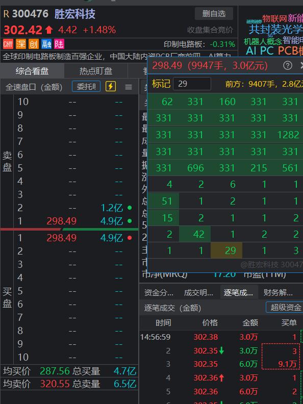 这两个是不是量化出货给了指数基金啊?2:58的295.49的卖单好几个331的拖拉机单,全被2:59的302.4买单吃掉了
