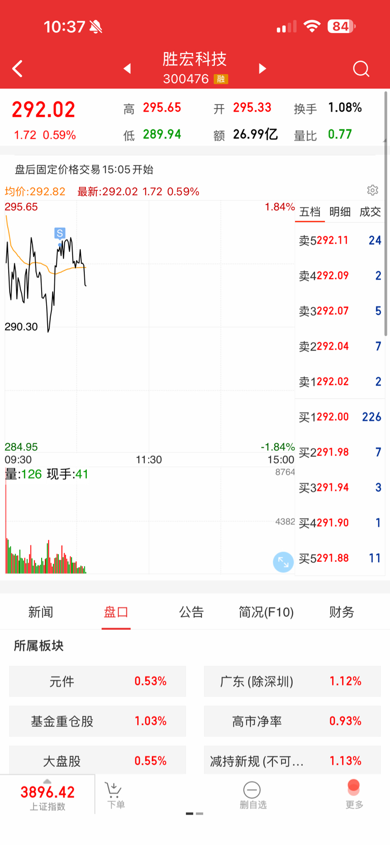 $胜宏科技(SZ300476)$ 太让我失望了,跑路了,亏一点,哎想着今天能硬气了,结果呵呵,该涨不涨,必有跌